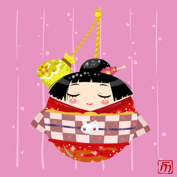 和風待ち受けFlashのアイデアを考えている時に色々と資料を見ていたらふと思いついたので、saiでちょこちょこと落書きしてみました。鈴のような、根付のような、そんな感じをイメージして描いてみました。